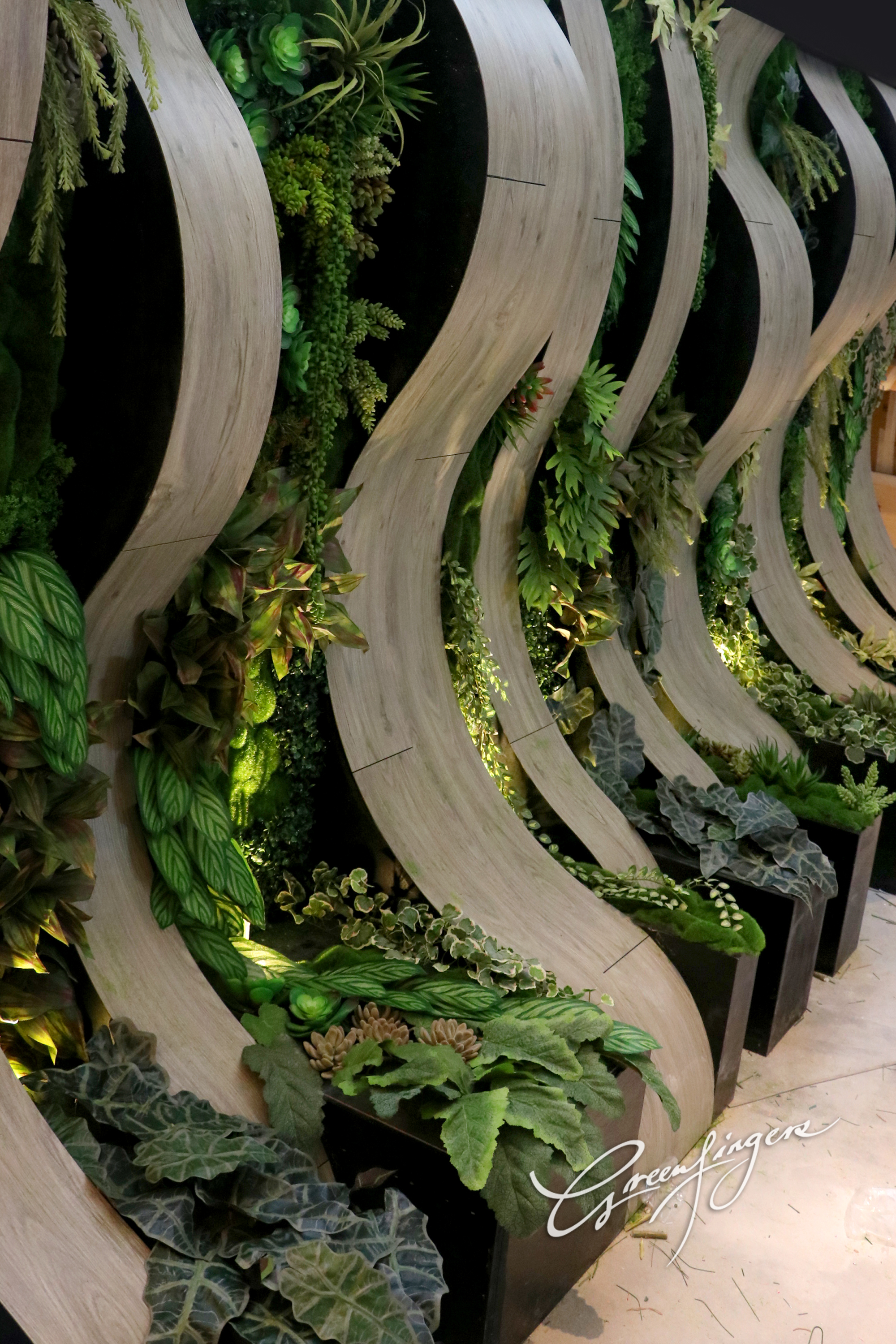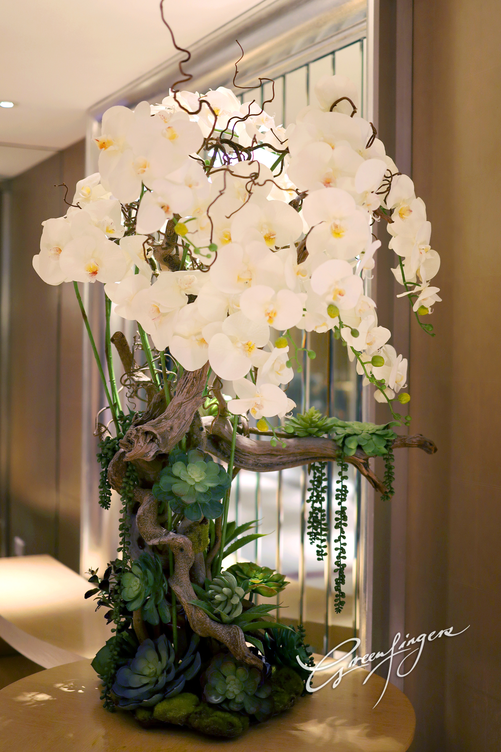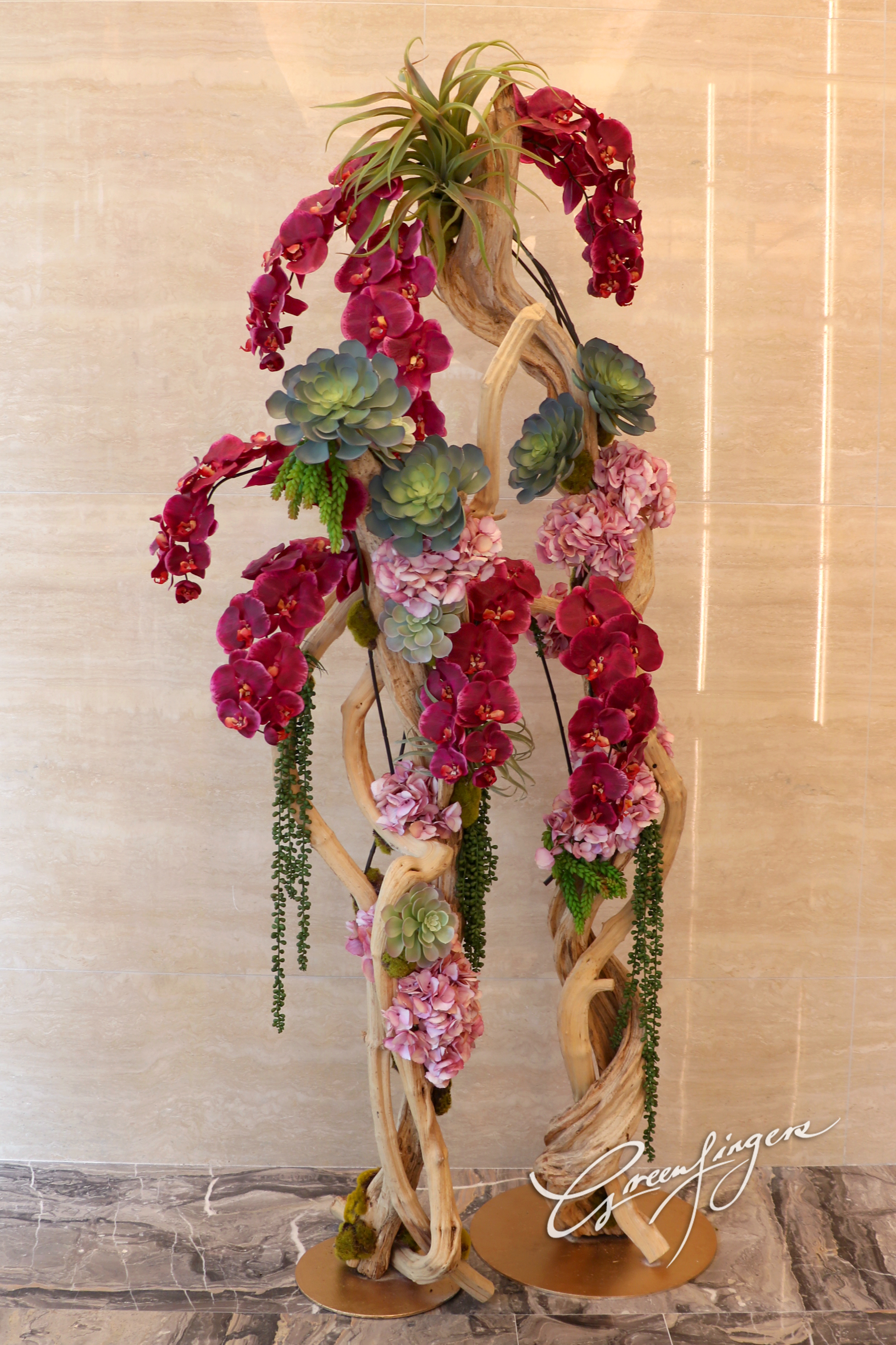 應用花藝物料製作大型、甚至抽象的雕塑設計,是我們花藝團隊的強項。我們的花藝團隊和室內設計師合作無間,將自然美景引入商店,辦公室和家居中。花藝雕塑包括應用在公司徽號,植物塑型,花卉造型、花窗簾,花屏風的設計等。通過花藝手法,賦予場所新的個性,無論是裝飾性的或功能性的。
