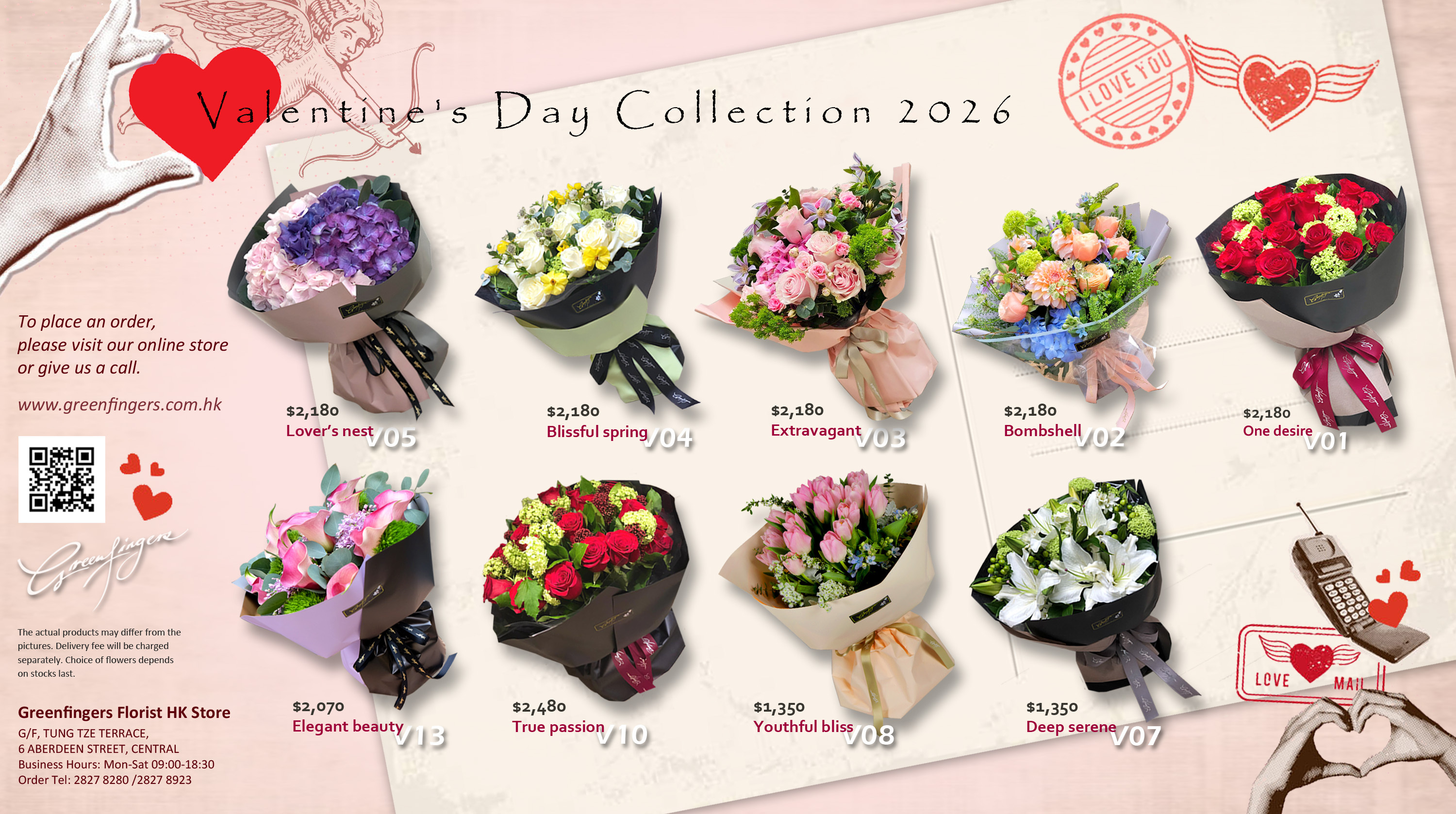 我們特地為今個情人節創作了一系列花藝作品,亦為每個作品命名,添加了其獨特性及個性,提昇了花藝作品所傳達的訊息,傳遞無盡的愛意。有些作品是限量版,為免向隅,請從速訂購。